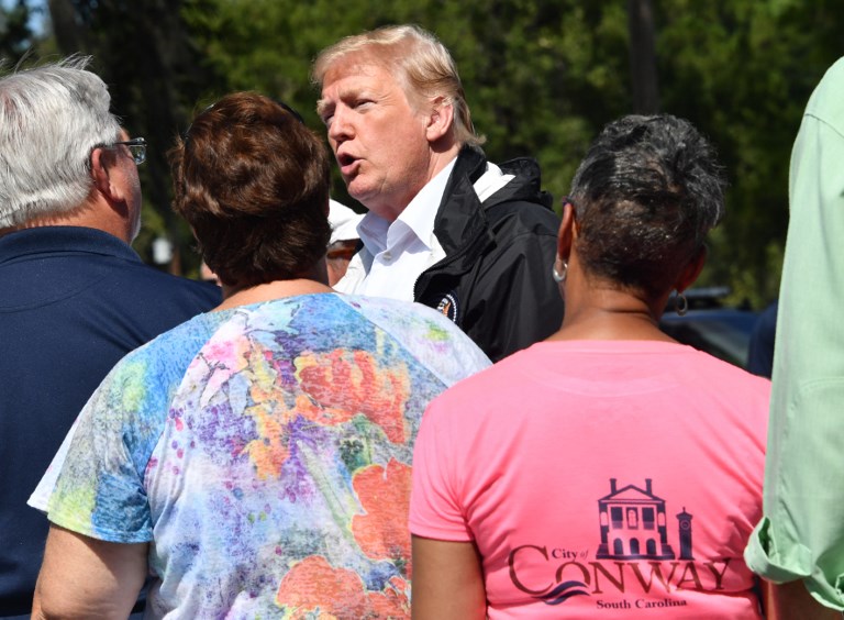 “Washington is with you. Trump is with you,” the president said during a briefing at emergency operations headquarters in Conway, South Carolina.