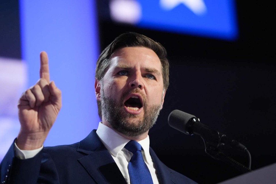 MILWAUKEE, WISCONSIN – JULY 17: Republican vice presidential candidate, U.S. Sen. J.D. Vance (R-OH) speaks on stage on the third day of the Republican National Convention at the Fiserv Forum on July 17, 2024 in Milwaukee, Wisconsin. Delegates, politicians, and the Republican faithful are in Milwaukee for the annual convention, concluding with former President Donald Trump accepting his party’s presidential nomination. The RNC takes place from July 15-18. Andrew Harnik/Getty Images/AFP (Photo by Andrew Harnik / GETTY IMAGES NORTH AMERICA / Getty Images via AFP)