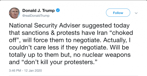 “To the leaders of Iran — DO NOT KILL YOUR PROTESTERS,” Trump tweeted, warning that the world and “more importantly, the USA is watching.”