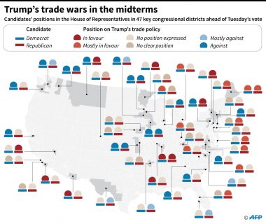Though by no means the top issue on voters’ minds nationwide, Trump’s multi-front trade battles have awkwardly pitted Republicans against their own president in some of the country’s most competitive races.