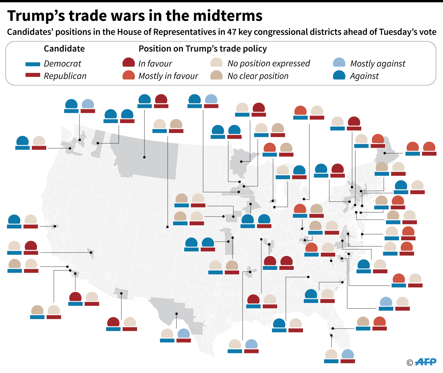 Though by no means the top issue on voters’ minds nationwide, Trump’s multi-front trade battles have awkwardly pitted Republicans against their own president in some of the country’s most competitive races.