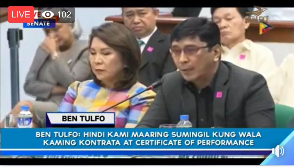 The contract was being questioned by COA saying there was no memorandum of agreement (MOA) between PTV-4 or the People’s Television Network Inc. (PTNI) and Tulfo’s Bitag Media Unlimited Inc., to air DOT commercial ads.