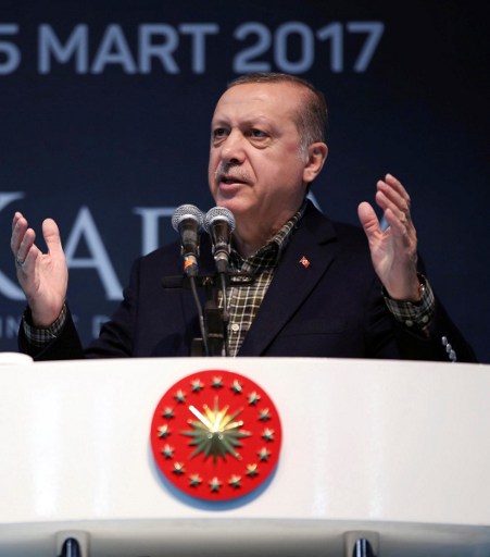 ISTANBUL, Turkey (AFP) — Turkish President Recep Tayyip Erdogan lashed out Sunday at Germany for blocking several rallies there ahead of an April vote in Turkey on boosting his powers as head of state, likening it to Nazi practices.