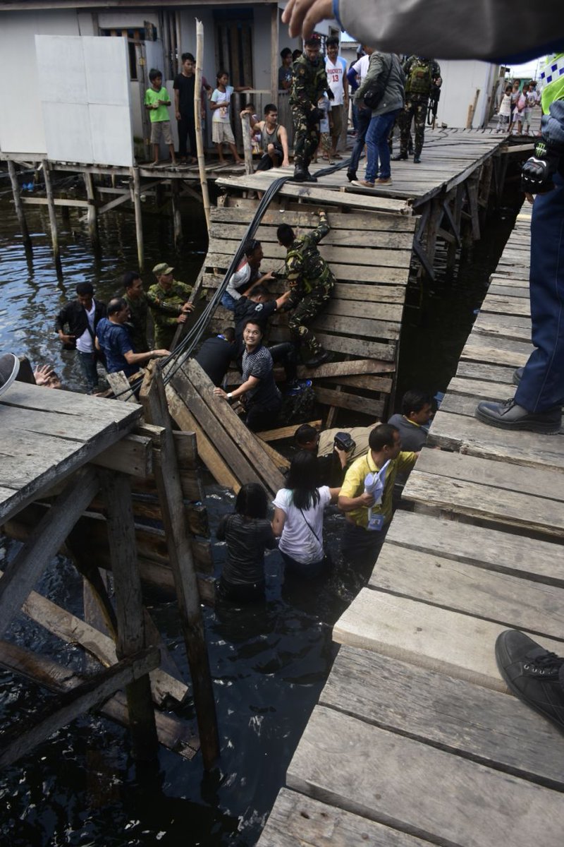 (Eagle News) — Two congressmen and the mayor of Zamboanga were injured on Thursday, April 26, after the wooden bridge they were on while they were inspecting houses intended for the victims of the Zamboanga siege gave way.