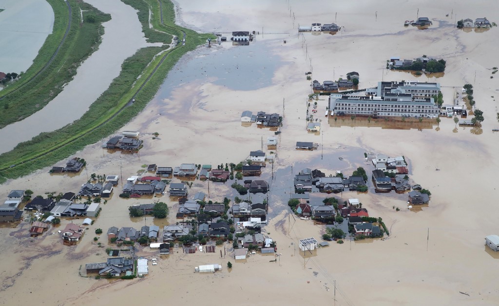 “This is very rare. Rice fields and other places are flooded. It’s like a sea,” she told NHK.