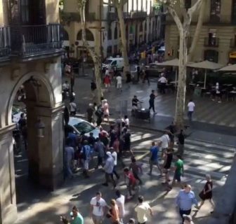 Officers in Spain’s second-largest city said the ramming on Las Ramblas was a “terrorist attack” and a police source said one suspect had left the scene and was “holed up in a bar.”