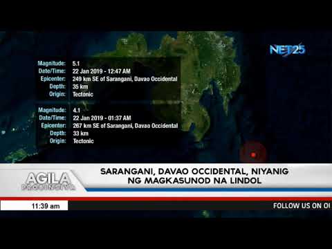 (Eagle News) — Two earthquakes jolted Sarangani, Davao Occidental early Tuesday, Jan. 22, the Philippine Institute of Volcanology and Seismology said.