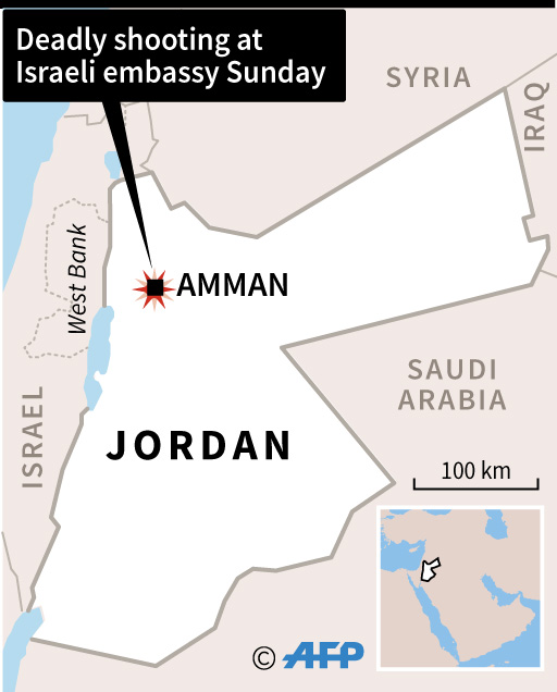 AMMAN, Jordan (AFP) — Two Jordanians were killed and an Israeli seriously wounded in a shooting Sunday at the Jewish state’s embassy in Amman, a security source said.