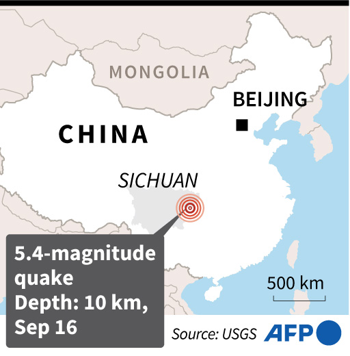 BEIJING, China (AFP) — Two people were killed and dozens injured when a shallow earthquake struck southwestern China in the early hours of Thursday, triggering the second-highest level of emergency response by rescuers in Sichuan province.
