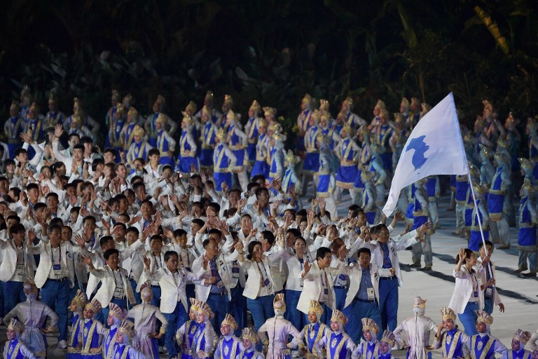 JAKARTA, Indonesia (AFP) — North and South Korea marched together behind the Korean Unification flag at the Asian Games opening ceremony on Saturday, in the latest demonstration of their rapprochement.