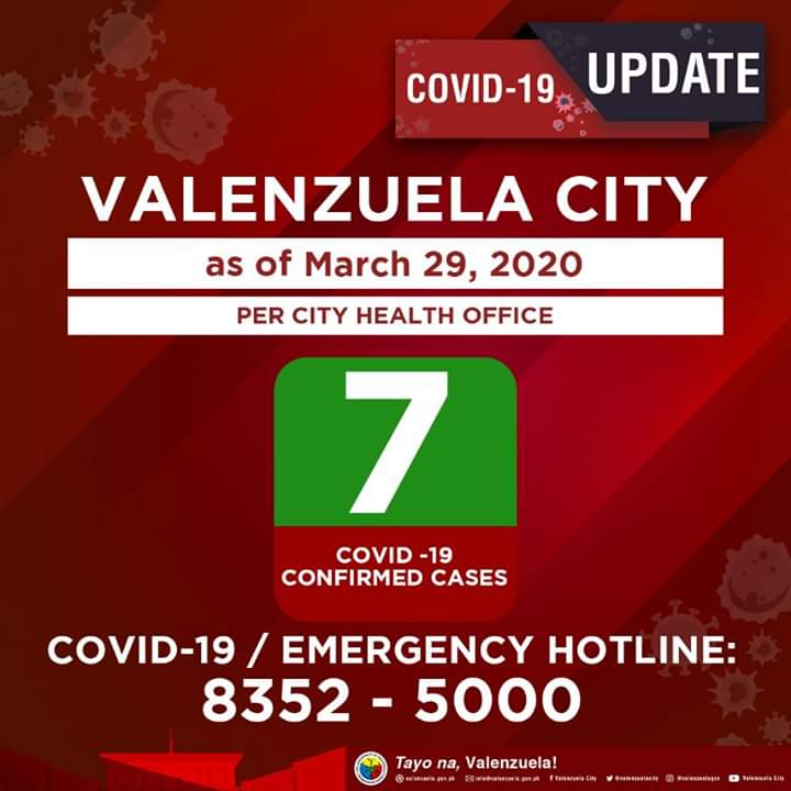 “If you are experiencing symptoms, have a travel history and/or exposure to a possible COVID-19 patient, please call the VALENZUELA CITY #COVID19 HOTLINE at 8352-5000,” the city said.