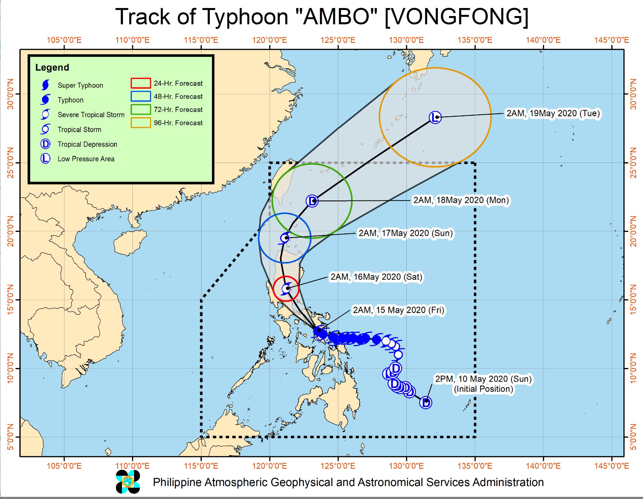 PAGASA said that typhoon “Ambo” is forecast to move towards Ragay Gulf before it is expected to make landfall again over the Bondoc Peninsula in Southern Quezon this morning.