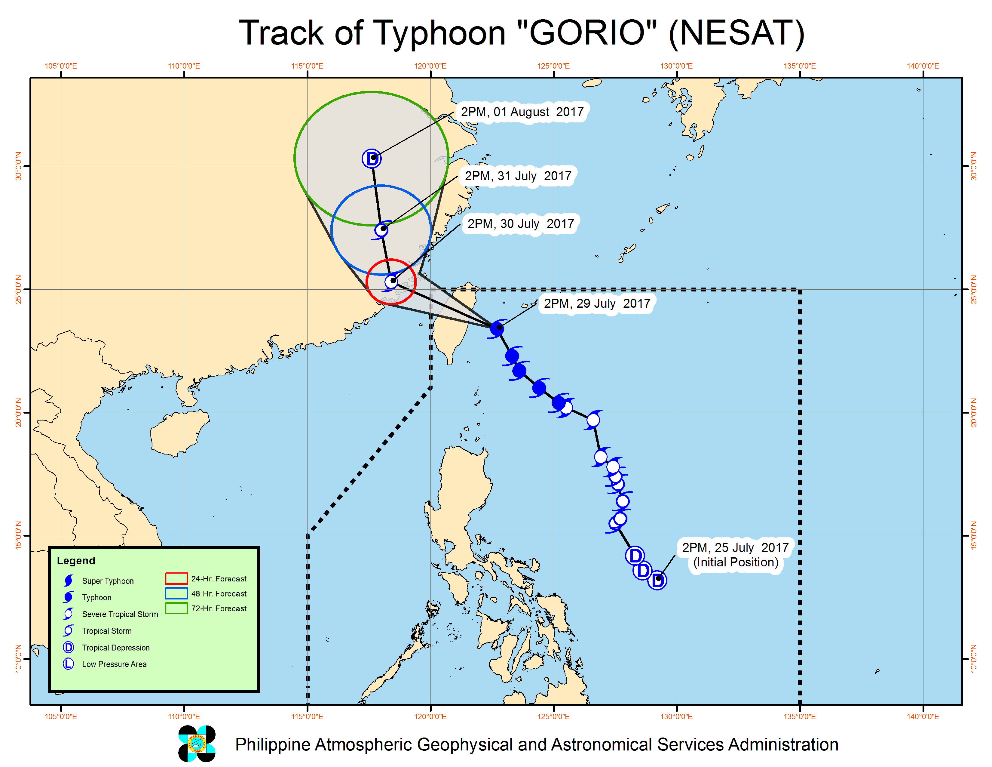 (Eagle News) – Typhoon Gorio is expected to exit the Philippine Area of Responsibility (PAR) Sunday morning (July 30), as it heads towards Taiwan, according to PAGASA’s latest weather bulletin.