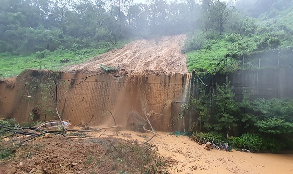 Rescue workers were picking through mud and detritus after a hillside collapsed in rural Miyazaki.