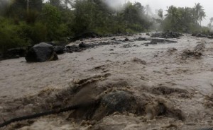 Volcanic rocks are washed onto a main road during a flash flood brought by Typhoon Hagupit in Guinobatan, Albay province southern Luzon December 7, 2014.