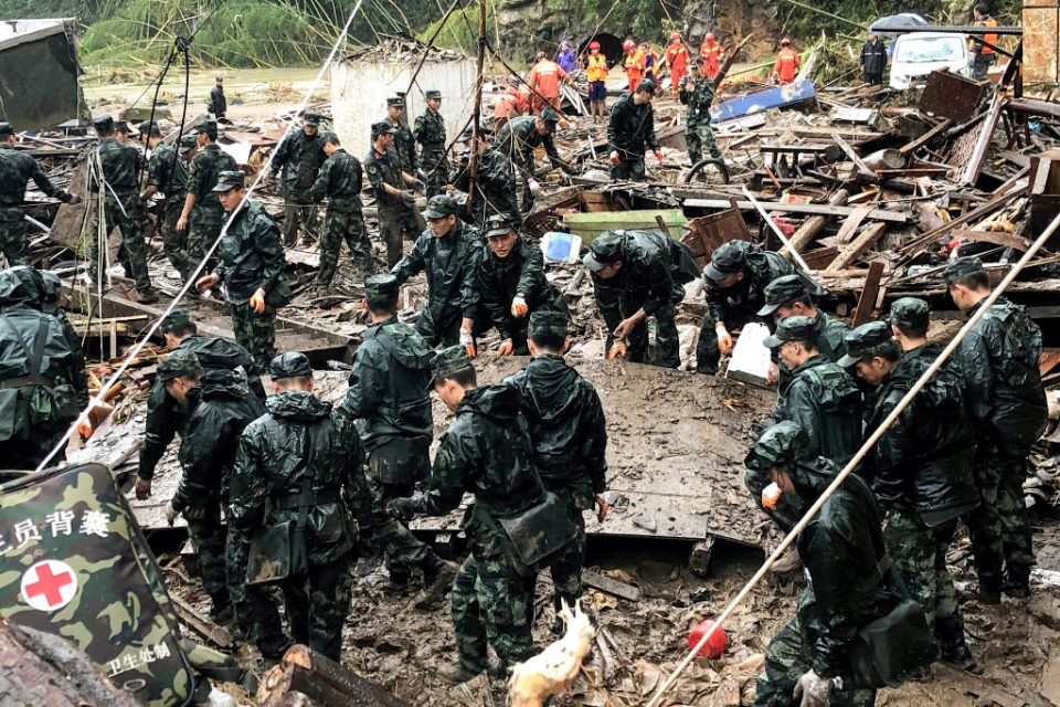 At least 18 of those were killed in a landslide triggered by torrential downpours in Wenzhou, state media said.