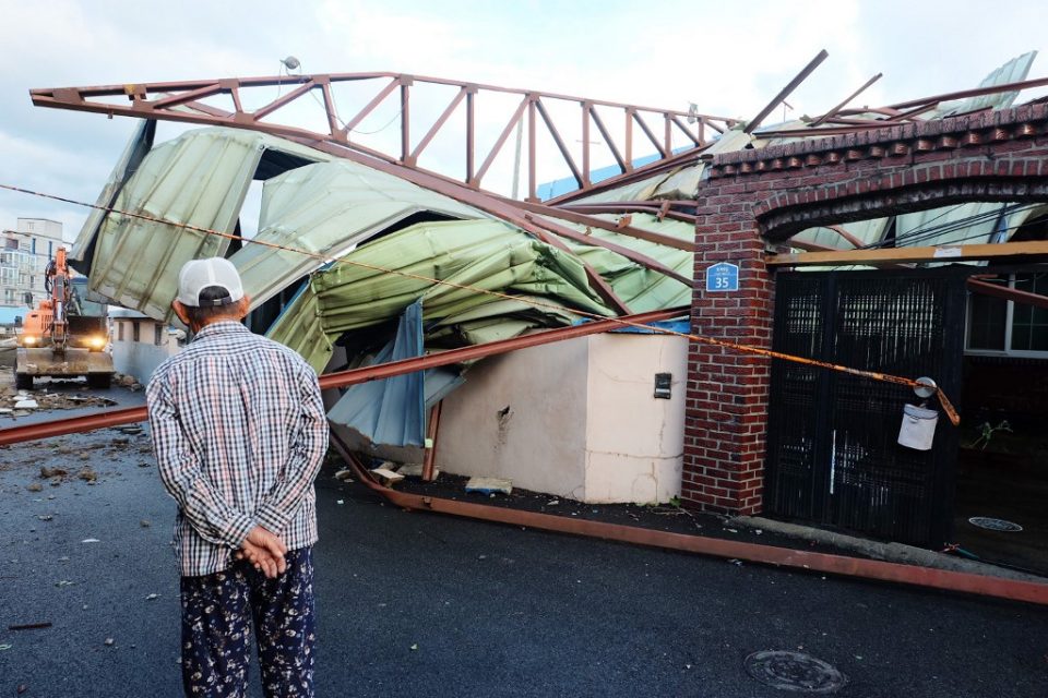 BUSAN, South Korea (AFP) — At least one person was killed and more than 2,000 people evacuated to temporary shelters in South Korea as a powerful typhoon churned across the peninsula, authorities said Thursday.