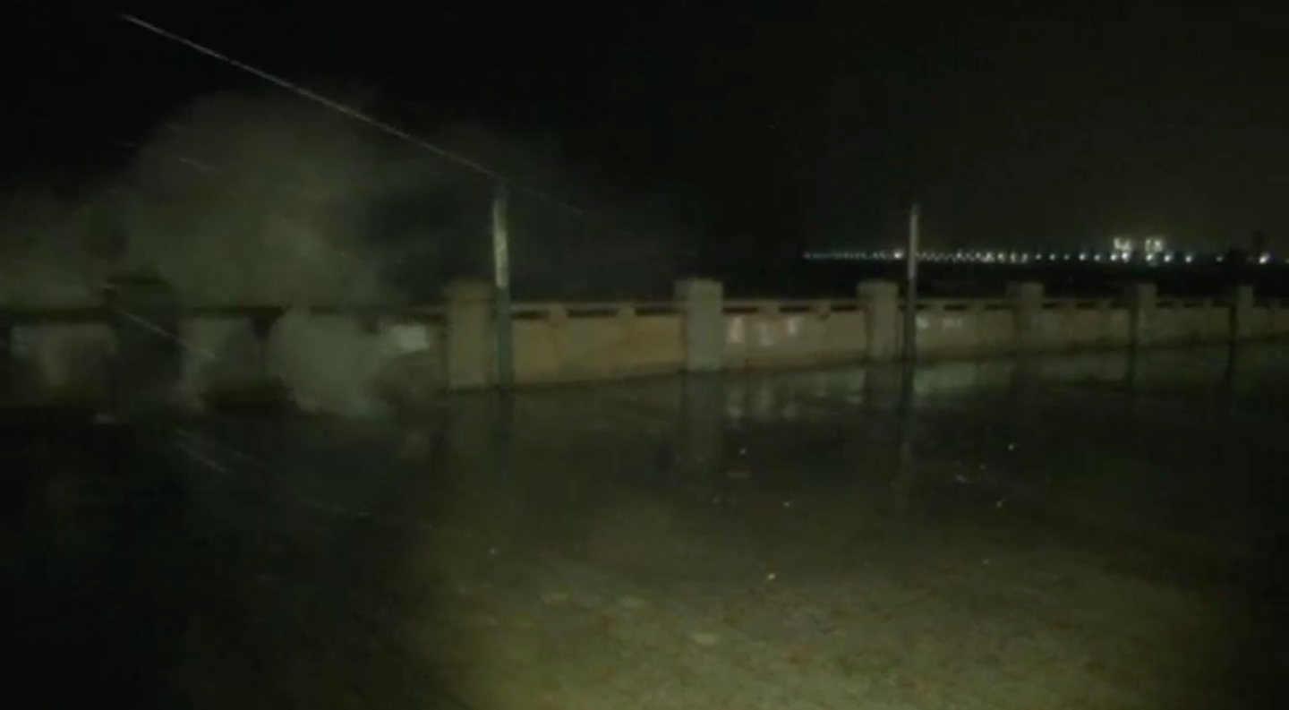 The typhoon brought strong gales to the Dapeng Peninsula where it made landfall at around 23:00 on Monday, with waves of up to five meters high seen belting a pier.