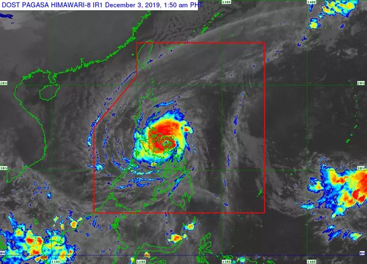 PAGASA said the eyewall of “Tisoy” is currently bringing violent winds and intense rainfall over Northern Samar, Catanduanes, Albay, Camarines Sur, and Sorsogon.