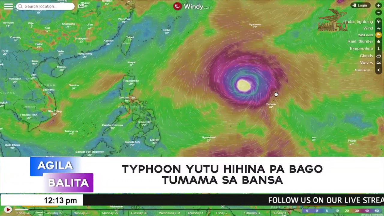 (Eagle News) — Nananatiling nasa labas ng bansa at nasa karagatang pasipiko ang Typhoon Yutu.