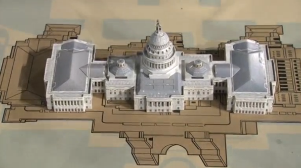 Mock-ups of the U.S. Capitol, the White House, Washington Monument, Lincoln Memorial and the Trump hotel were on display.