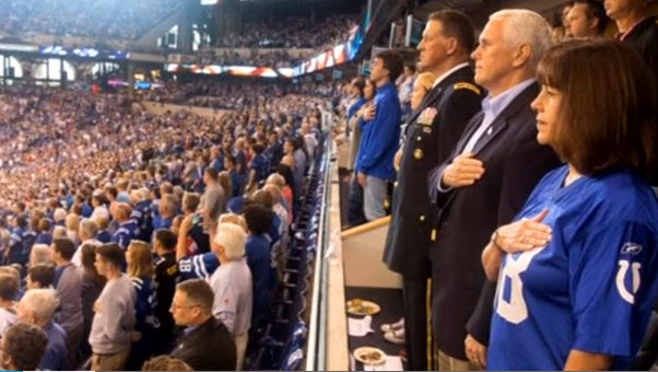 “While everyone is entitled to their own opinions, I don’t think it’s too much to ask NFL players to respect the Flag and our National Anthem,” Pence said. “I stand with President Trump, I stand with our soldiers, and I will always stand for our Flag and our National Anthem.”