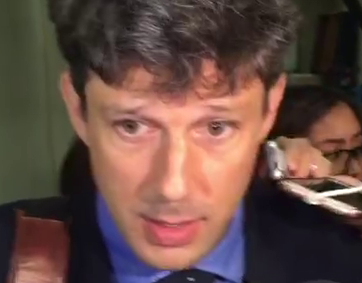 Uber’s Mike Brown speaking to reporters after the meeting with LTFRB officials on Wednesday. /Meanne Corvera/ Eagle News Service/
