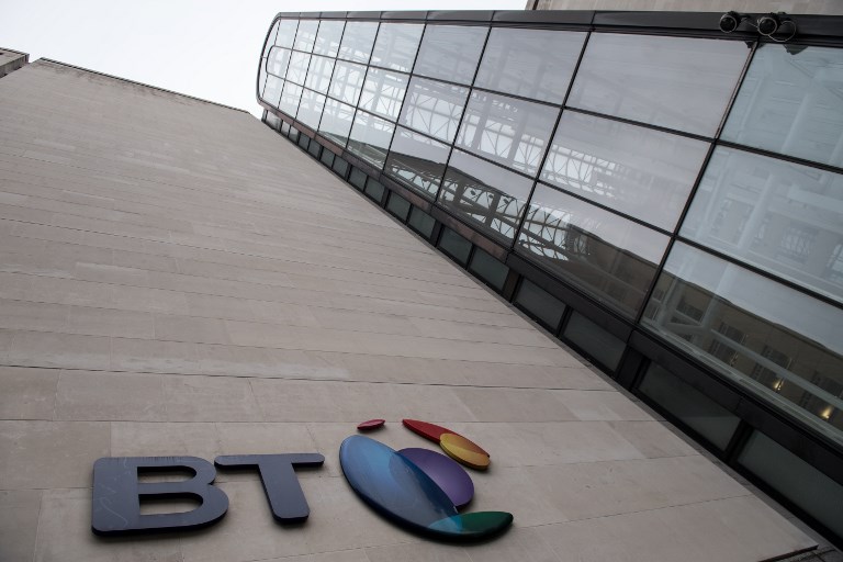 British telecoms and television broadcasting company BT announced on May 10, 2018 that it will axe 13,000 jobs in administration and management. / AFP / Chris Ratcliffe/