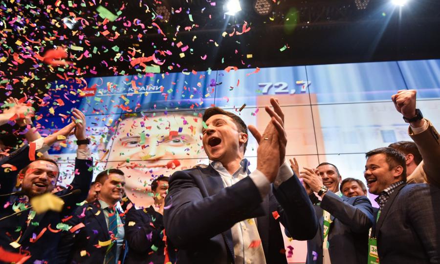 Volodymyr Zelensky, whose only previous political role was playing the president in a TV show, trounced incumbent Petro Poroshenko by taking 73 percent of the vote, according to partial official results.