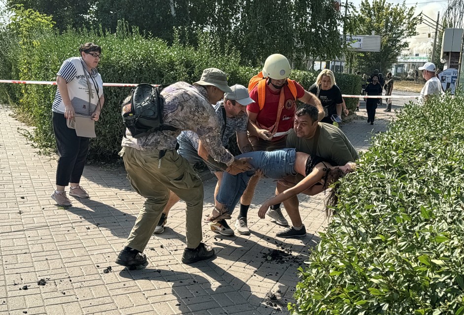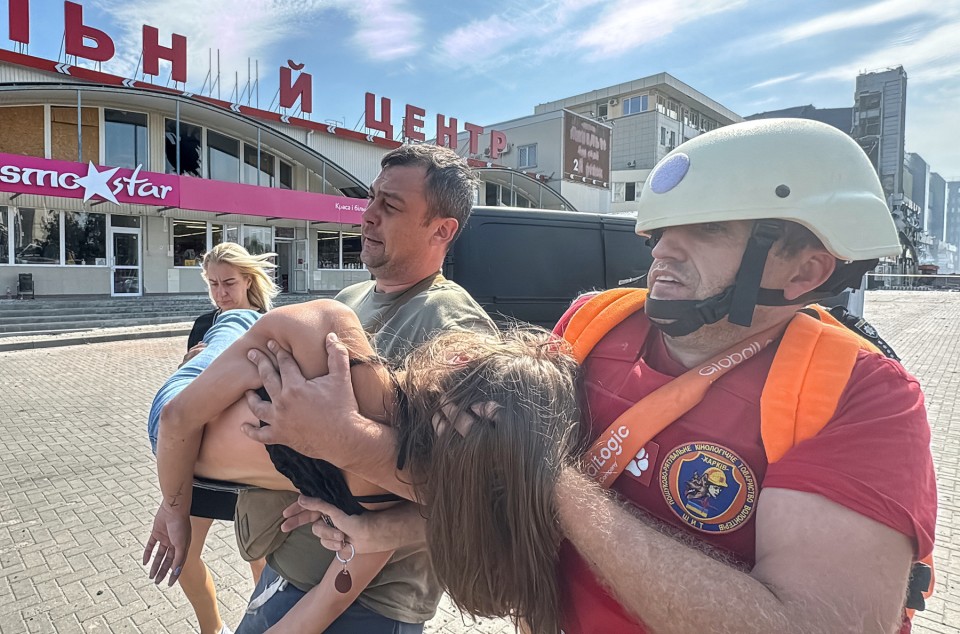 In Kharkiv, rescue workers and volunteers carried injured civilians to ambulances after missiles struck the mall and an events hall. Shattered glass and debris were strewn across the ground and people fled to a metro station for safety.