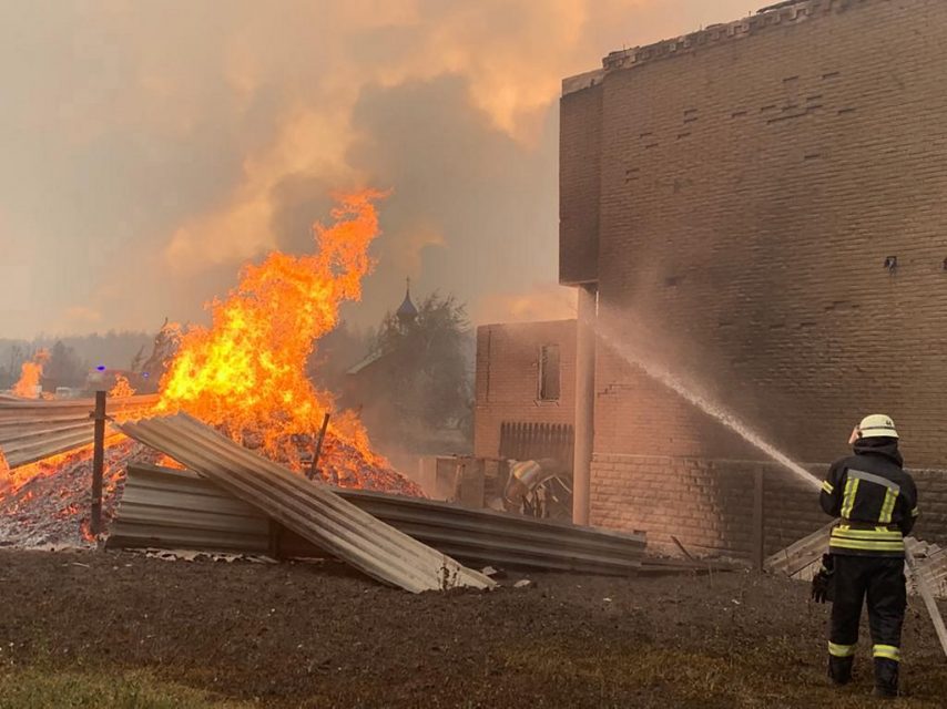 The blaze began on Monday in Lugansk region and engulfed Smolyanynove, a village just 20 kilometres (12 miles) from the front line of Ukraine’s war with Russia-backed separatists.