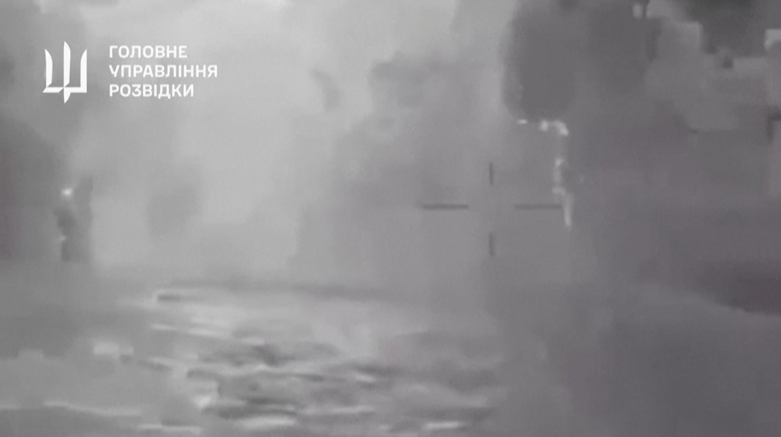 Ukraine’s GUR military intelligence unit on Tuesday released a black and white video of what it said was the overnight attack on the Sergei Kotov, a 94-metre (308-foot) Russian military patrol ship.
