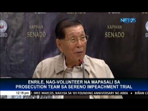 QUEZON CITY, Philippines (Eagle News) — Former Senator Juan Ponce Enrile volunteered to be part of the prosecution team in the expected impeachment trial against Chief Justice Maria Lourdes Sereno.