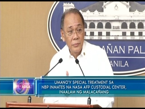 Paliwanag ni Presidential Spokesman Ernesto Abella, hindi pinapayagan ng Malacañang ang sinasabing special treatment sa mga bilanggo.