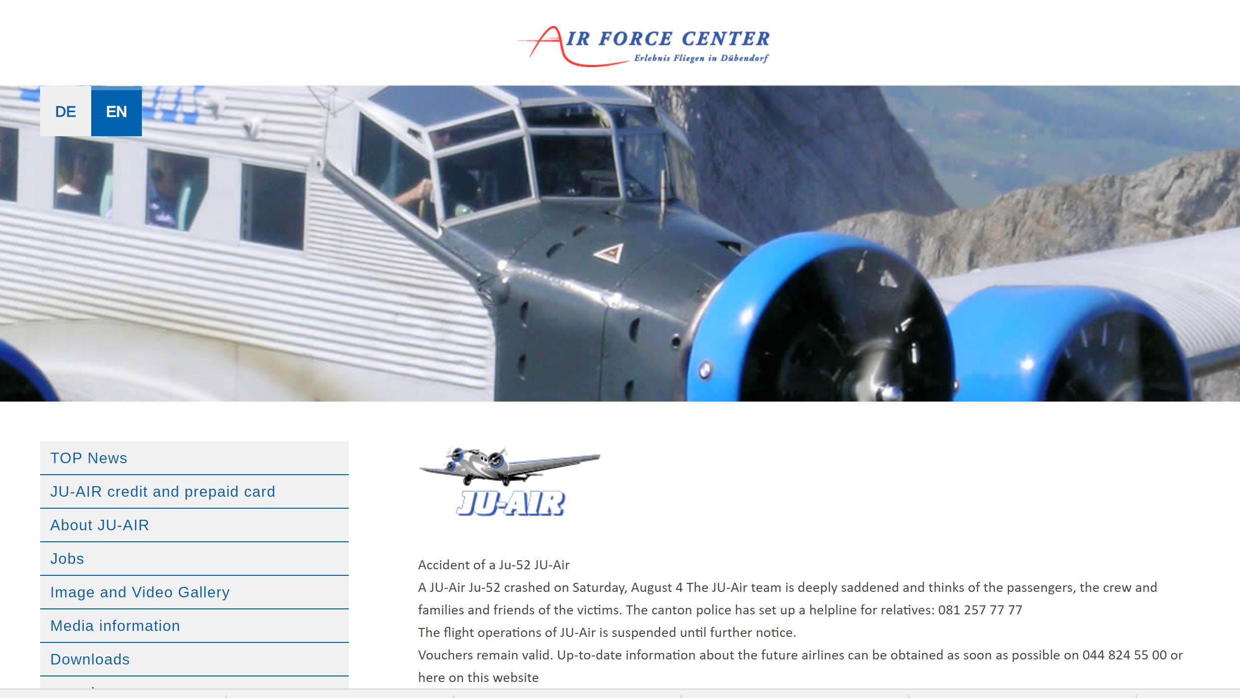 On its website, JU-Air mentions one past accident, in 1987, at the Koblenz airport in Germany in which nobody was hurt.