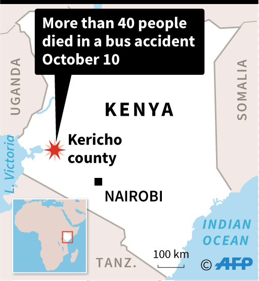 According to police, the bus was travelling from Nairobi to the western town of Kakamega and carrying 52 passengers.