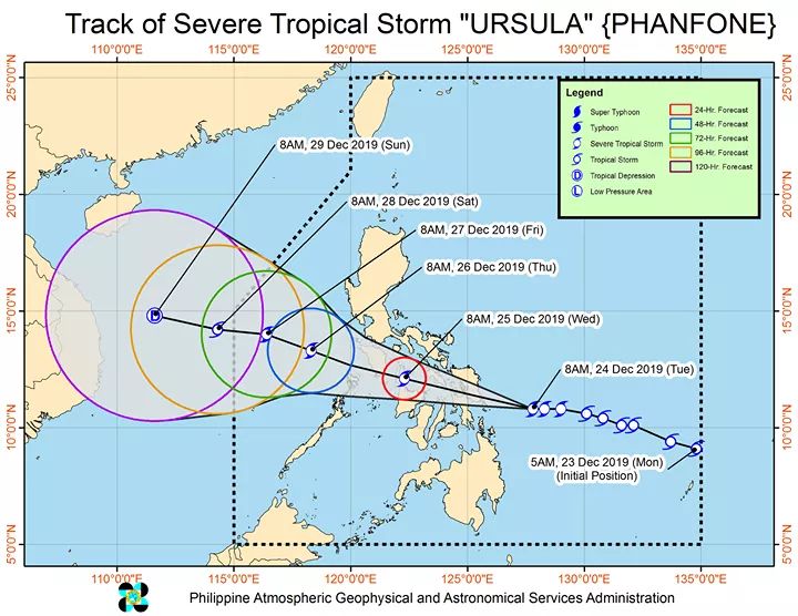 PAGASA said “Ursula” is forecast to make landfall over Eastern Samar this afternoon or early evening and may intensify into a typhoon prior to landfall.