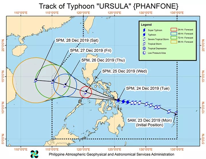 (Eagle News)–“Ursula” has slightly intensified and is now headed toward the Tacloban-Palo area.