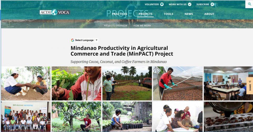 “ACDI/VOCA implements the USDA Food for Progress Mindanao Productivity for Agricultural Commerce and Trade (MinPACT) project. MinPACT increases the incomes of smallholder cocoa, coconut, and coffee farming families in Southern and Western Mindanao,” the ACDI-VOCA said in its website.