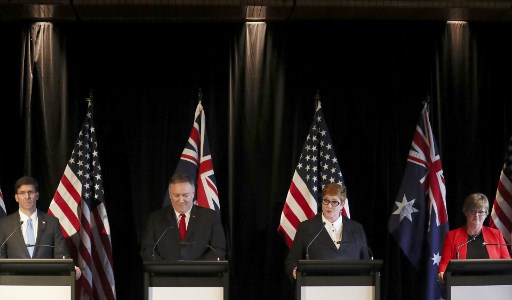 US Secretary of State Mike Pompeo and Defense Secretary Mark Esper welcomed to Washington their Australian counterparts, Marise Payne and Linda Reynolds, for two days of talks that will include a news conference on Tuesday.