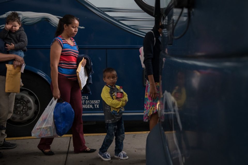 (FILES) In this file photo taken on June 12, 2019 Central American migrant families recently released from federal detention wait to board a bus at a bus depot in McAllen, Texas. – US House Speaker Nancy Pelosi on June 27, 2019 bowed to pressure from President Donald Trump’s Republicans as Congress approved $4.6 billion in emergency aid to ease a swelling migrant crisis on the nation’s southern border. One day after the Senate passed the measure, the House of Representatives followed suit with a bipartisan vote of 305 to 102 that sends the bill to the president’s desk.Pelosi and Democrats had wanted additional language that would ensure better protections of migrant children but conceded to Republicans when they failed to move the needle. (Photo by Loren ELLIOTT / AFP)