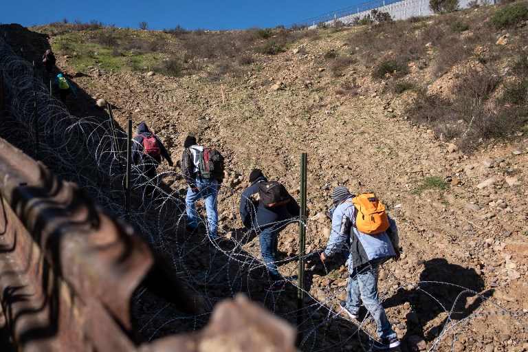 A family of Central American migrants hoping to reach the United States in hopes of a better life, walk after crossing the US-Mexico border fence from Tijuana, Baja California State, Mexico, to the US, on December 30, 2018. – Outgoing White House chief John Kelly said he had “nothing but compassion” for undocumented migrants crossing into the US and undercut the idea of a border wall in an interview published Sunday that jarred with President Donald Trump’s rhetoric on immigration. (Photo by GUILLERMO ARIAS / AFP)