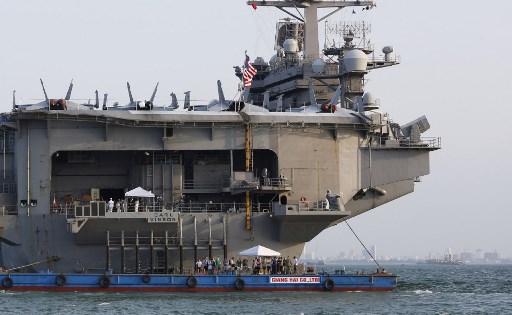 The USS Carl Vinson (CVN-70) arrived in Vietnam March 5 for the first time since the end of the war, as the former foes bolster military ties in the face of Beijing’s build-up in the disputed South China Sea. / AFP PHOTO / Linh Pham