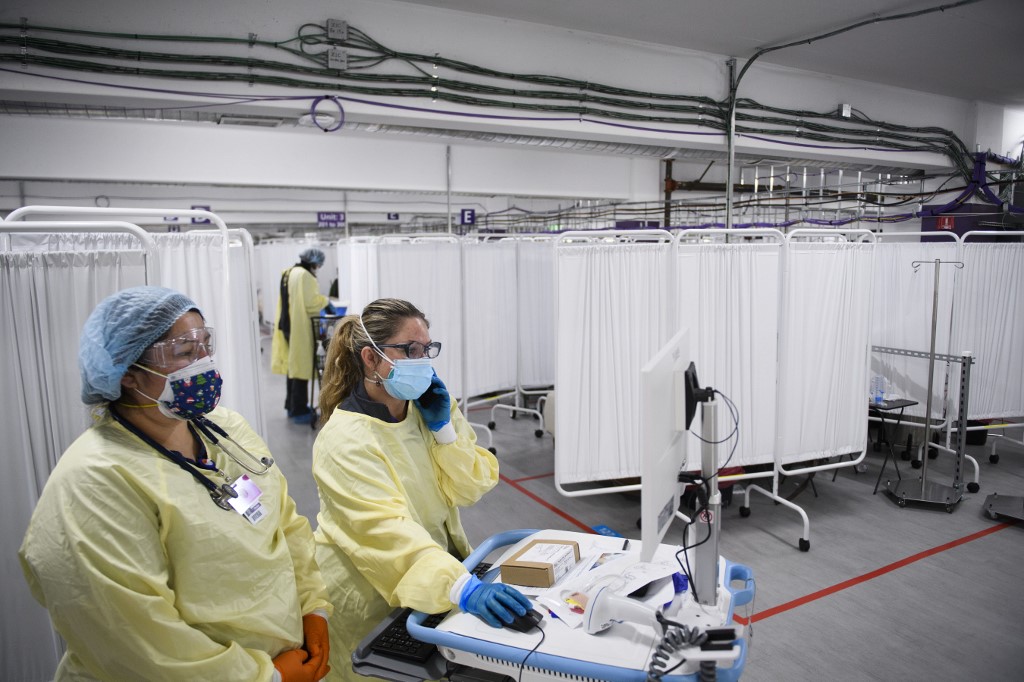 The “alternative care site” has more than 1,400 beds, separated from one another by screens.