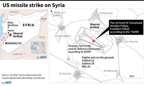 Map showing the Shayrat Airfield in Syria, target of a US missile attack on Friday.