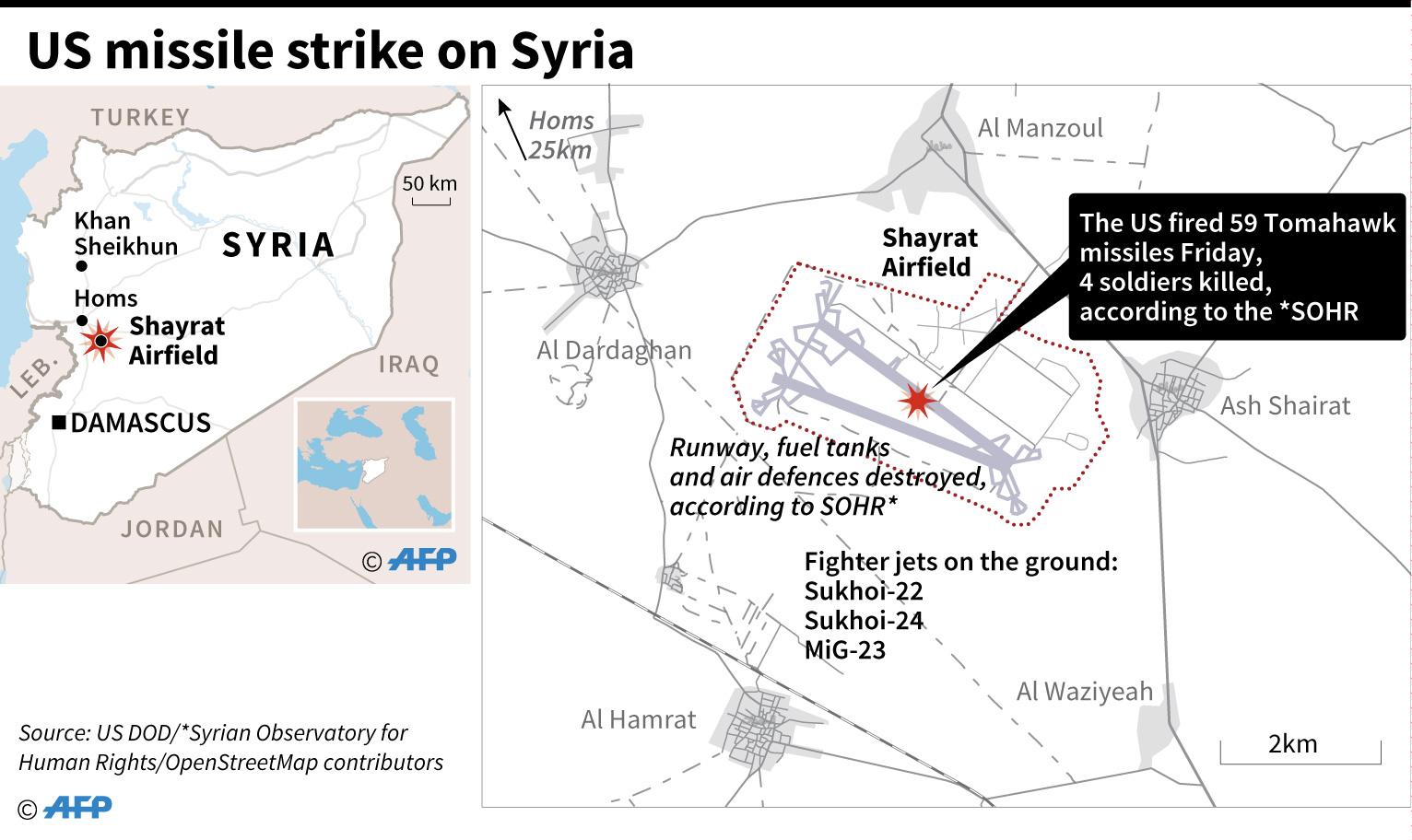 Map showing the Shayrat Airfield in Syria, target of a US missile attack on Friday.