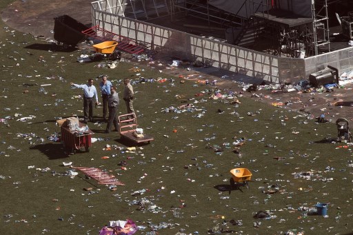 Inside were 23 firearms including automatic weapons. Investigators also found another 19 firearms along with explosives and several thousand rounds of ammo at Paddock’s house in Mesquite, Nevada, 80 miles (130 kilometers) away.