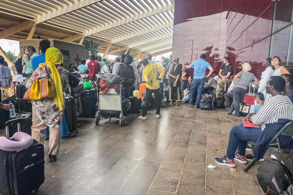 French soldiers and citizens of European countries are seen outside the Diori Hamani International Airport in Niamey on August 2, 2023. The first planes carrying French and other European citizens evacuated from Niger landed in Paris Wednesday, a week after a coup toppled one of the last pro-Western leaders in the jihadist-plagued Sahel. (Photo by Stanislas Poyet / AFP)