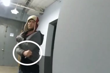 But he fails to stop moving and keeps walking with his hands clenched in fists, holding an object that the officers said they thought was a screwdriver.