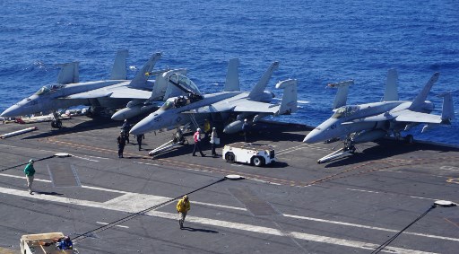 ABOARD THE USS CARL VINSON — With a deafening roar the fighter jets catapulted off the US aircraft carrier and soared above the disputed South China Sea, as its admiral vowed that the mighty ship’s presence was proof America still had regional clout.